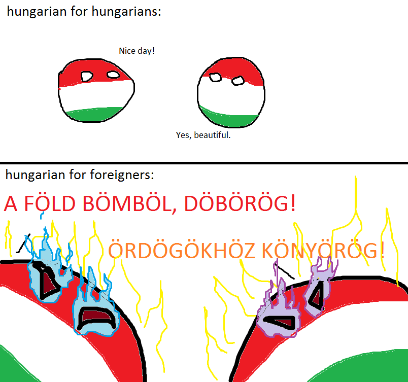 "Да что, блять, опять не так?!" - самая расхожая фраза при изучении венгерского. Потому что даже простое и практически одинаковое во всех европейских языках словосочетание в венгерском может оказаться хитровыебанным до неузнаваемости. Как, например, спросить по-венгерски "когда у тебя выходные?". Mikor vannak hétvégéked? Фраза вообще не гуглится даже.