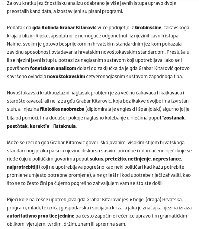>>493274 Один комментатор выше утверждал, что Колинда говорит без тонических ударений, как иностранка, а автор этого разбора наоборот заявляет, что благодаря ее образованию она хорошо овладела тонкими особенностями тонического ударения. Кто из вас ошибается? Какая черепашка пиздит?