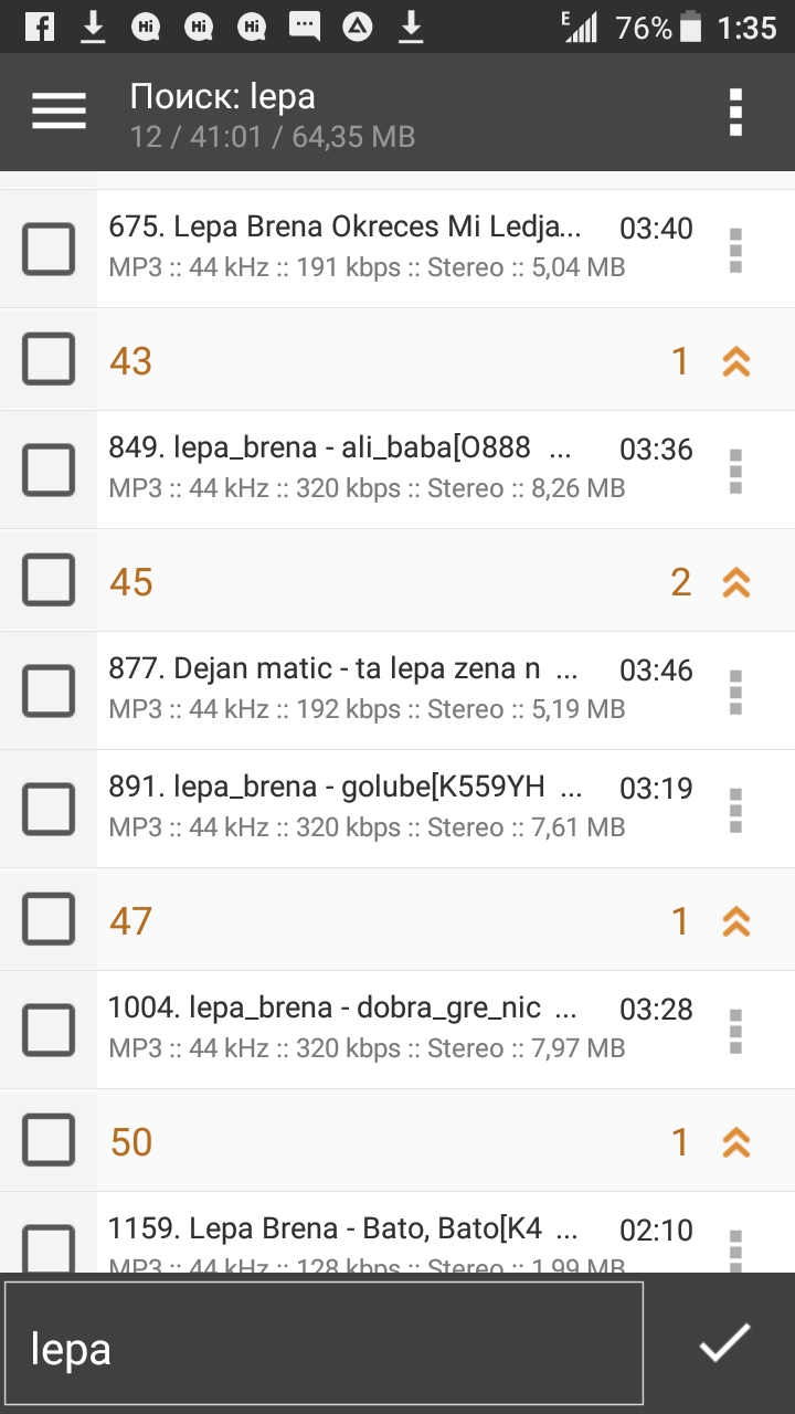 >>494263 Мне нравится больше всего "Lepa Brena - Okrećeš mi ledja" . Я скрин из AIMPa скинул, и она первая в списке. Найди эту песню. Она очень хорошая. Ну и далее по списку. "golube" . "Bato bato".... И т.д. Ну это своеобразный жанр конечно. Не каждому заходит. Я вот тащусь например. А ты чего, только Лепку слушаешь что-ли? Попробуй Hari-Mata-Hari , или вот ещё дуэт - Serif Konjevic Ove godine (duet Donna Ares)