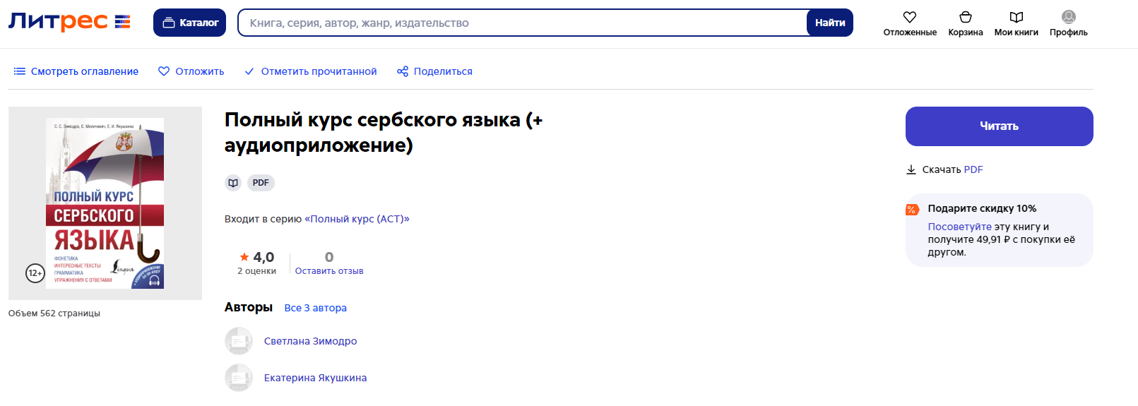 Если кому нужно, то вот 1) https://ufile.io/dzcosybo -- Полный курс сербского языка 2) https://ufile.io/l2v7mmxy -- Српске приче и бајке / Сербские рассказы и сказки. Тексты для комментированного чтения с упражнениями