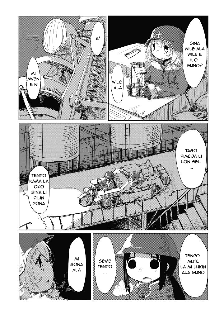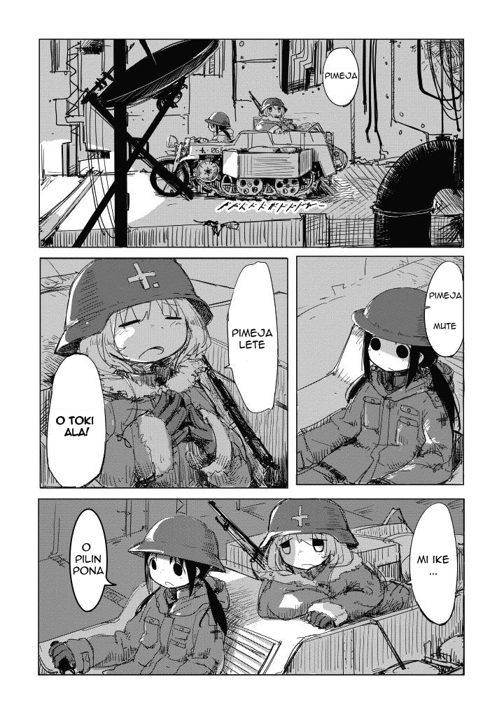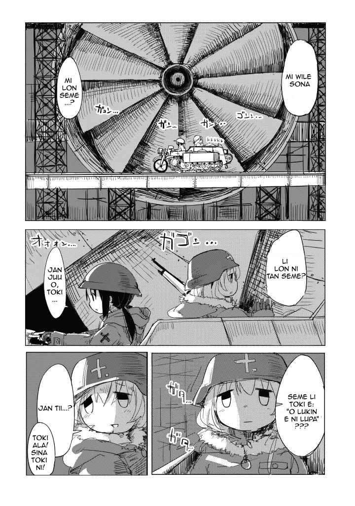 mi tu li tawa lon ma tomo. jan ante li lon ala. mi moku e kon pi kasi nasa. sina moku e suwi. ilo suno li suno. sina toki e ni: “mi tu o tawa tomo pi sitelen tawa.“ taso mi wile e ni: mi tu o tawa tomo pi telo nasa.