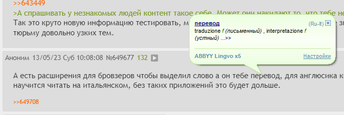 А есть расширения для бровзеров чтобы выделил слово а он тебе перевод, для англюсика китаюсика японюсика таких полно. Хочу быстро научится читать на итальянском, без таких приложений это будет дольше.
