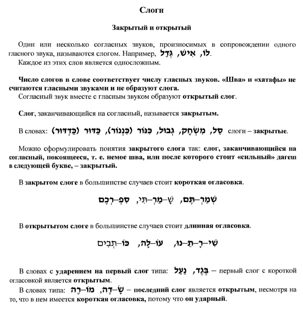 Слоги какие-то открытые/закрытые, огласовки длинные/короткие — на хера всё это надо учащемуся? Особенно в самом начале. Про огласовки надо знать, как они читаются. Про дагеш — что он отличает «б», «к», «п» от «в», «х», «ф». Всё. А остальное — от лукавого (если ты учишь иврит, а не пишешь диссертацию про иврит).