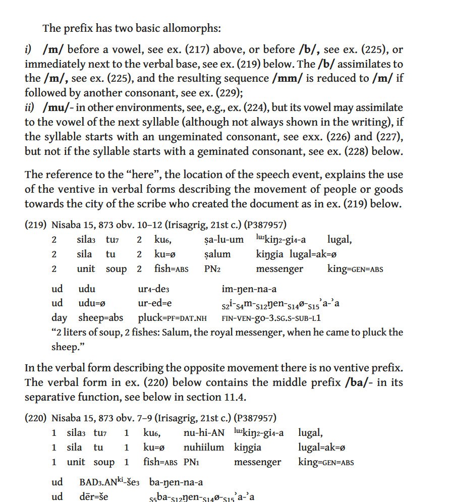 А более новая грамматика 2018 г. Золёми уже четко утверждает, что это префикс для обозначения близости или движения к говорящему. Но у нее есть большой минус - она вообще не учит клинописи.