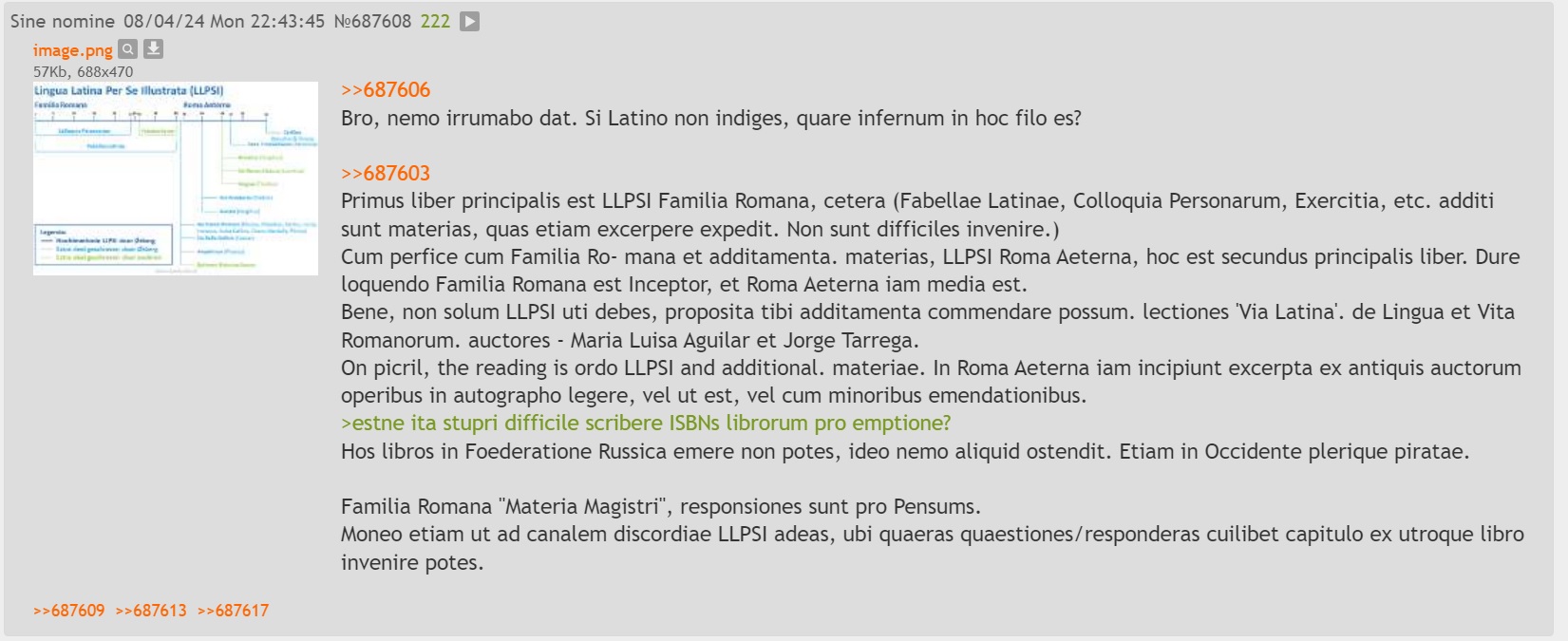Что характерно, в треде нулевая активность. Русскоязычным настолько интересна латынь, что аж три года шли до бамплимита.