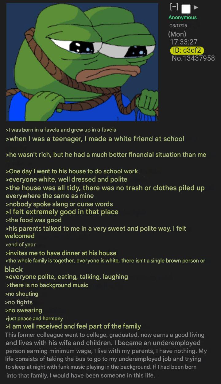 >>733854 ты не в курсе видимо скока этно немцев в Бразилии? Андреас Киссер же бля, сепультура, школка кассеты рефьюз резист. Оскар Ниемайер главный их звёздный архитектор. Биолог ещё этот их известный, вылетело имя из головы, много их там арийцев и прочих бранковых. Потом и удобно гннать через Бражиу нелегалов, там и этно чех был президентом, и этно болгарка, кого только нет, всех цветов, фамилий, ДНК, фарш. И доки всё, печати и прочее вме это спиздить Ил раздобыть нет проблем, цифровизация на нуле, люди рожают у помоек поди-ка датчанином приКИНЬся ви Швеции, лол, там в Дании пол Питера население по деревням, всё в одном фейсбуке, все всех знают. Та тока ЦРУ и Моссад шифруются, потому что их там и не ловят и ключи выдают от всех замков заранее, изи мод.