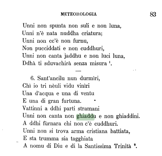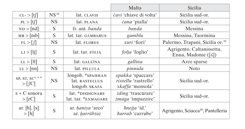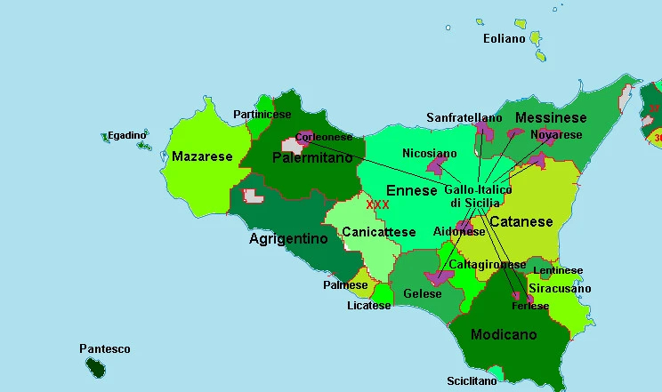 Не секрет, что сищильяну имеет больше параллелей с Севером и Центром, чем севернее расположенный неаполитанский. Часть является необъяснимой архаикой, часть другая же пытаема бысть объяснима чрез контакты писменной поры.