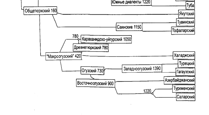 Жаль, что не обсчитывают распад с хорасанским и иракско-туркоманским, тогда бы картинка была более объективна. Отдалённость же туркменского (излишняя) набирается из-за лексики в первую очередь, как и близота крымско-огузского.