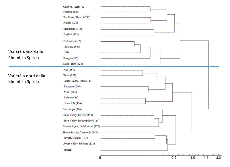 Северная Италия является исключением правила о месте возникновения языка как о самом многоязычном месте. В районе Рима сталкиваются всего два современных диалекта, являющихся довольно близкими. А на Севере вон скоко всего.