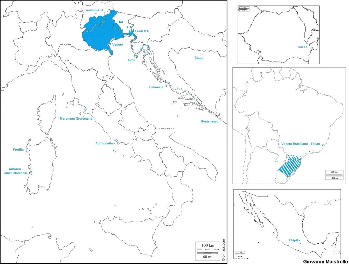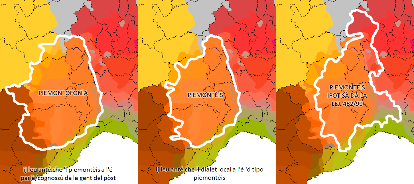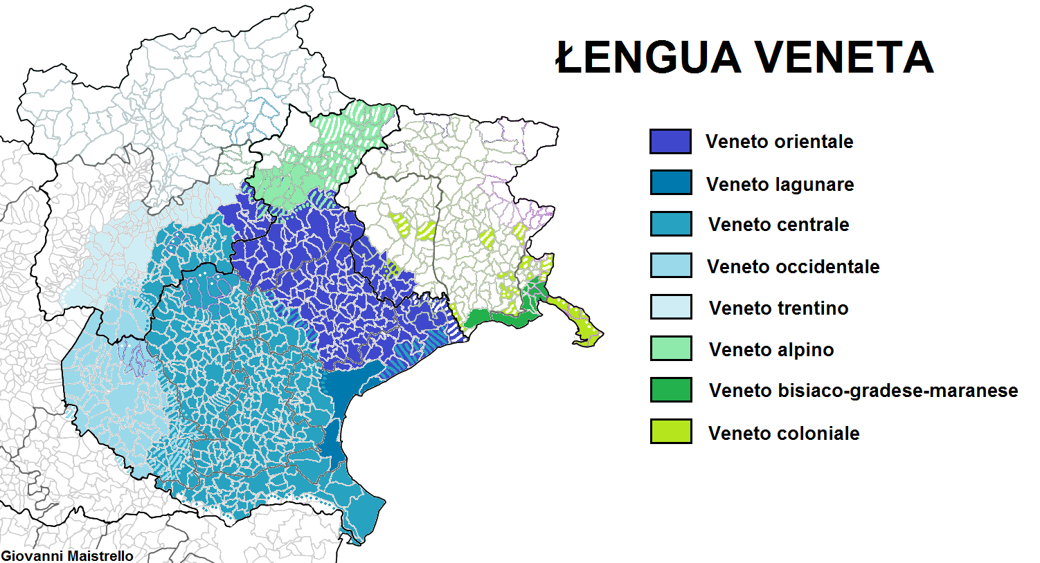 Рассматриваем и разбираем пьемонтский, ломбардский, лигурский, эмилиано-романьольский, венецианский, фриульский, ладинский, арпитанский... И местные диалекты итальянского литературного тоже. Апеннинских немцев и славян рассматривают отдельно.