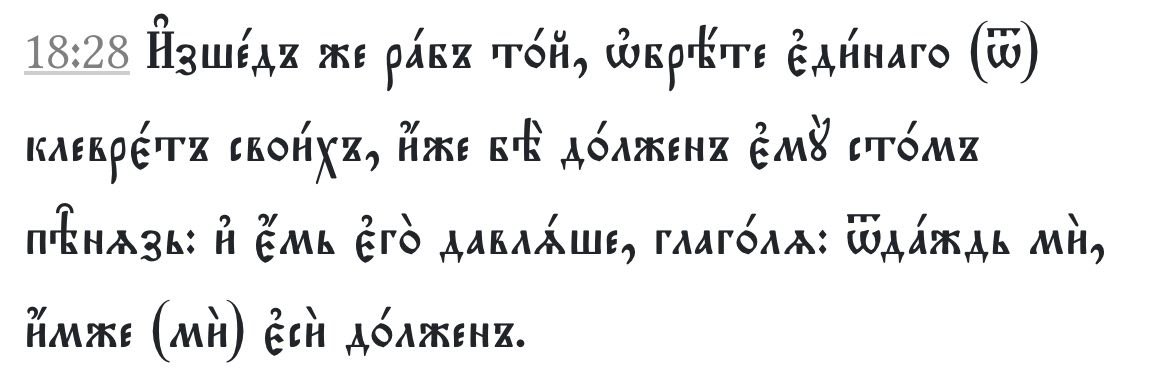 >>689203 серьезно? И где там церковнославянская грамматика? Кроме некоторых форм слов, грамматика русского языка того времени. Ну, местехъ возможно. Но в целом это и близко не церковнославянский.