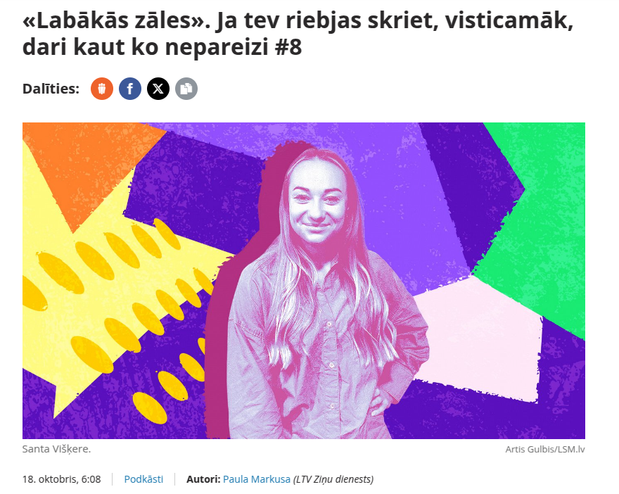 Skriešana ir daudzu mīlēts un arī tikpat daudzu nīsts sporta veids. Tomēr ar skriešanu var sadraudzēties un padarīt to par baudāmu procesu, pārliecināta ir bijusī vieglatlēte un skriešanas trenere Santa Višķere. Viņa raidieraksta "LSMnīca" ciklā "Labākās zāles" uzsvēra, ka šis sporta veids ir pieejams gandrīz ikvienam.