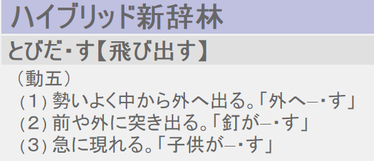 >>729199 >Там нет 飛ぶ, написано 飛び出す. Ясно, начался троллинг тупостью. С такого рода доебками можешь сразу пройти нахуй. Я тоже так умею: >Там нет 飛び出す, написано 飛出し. Пробуй читать написанное, а не выдумывать бред.