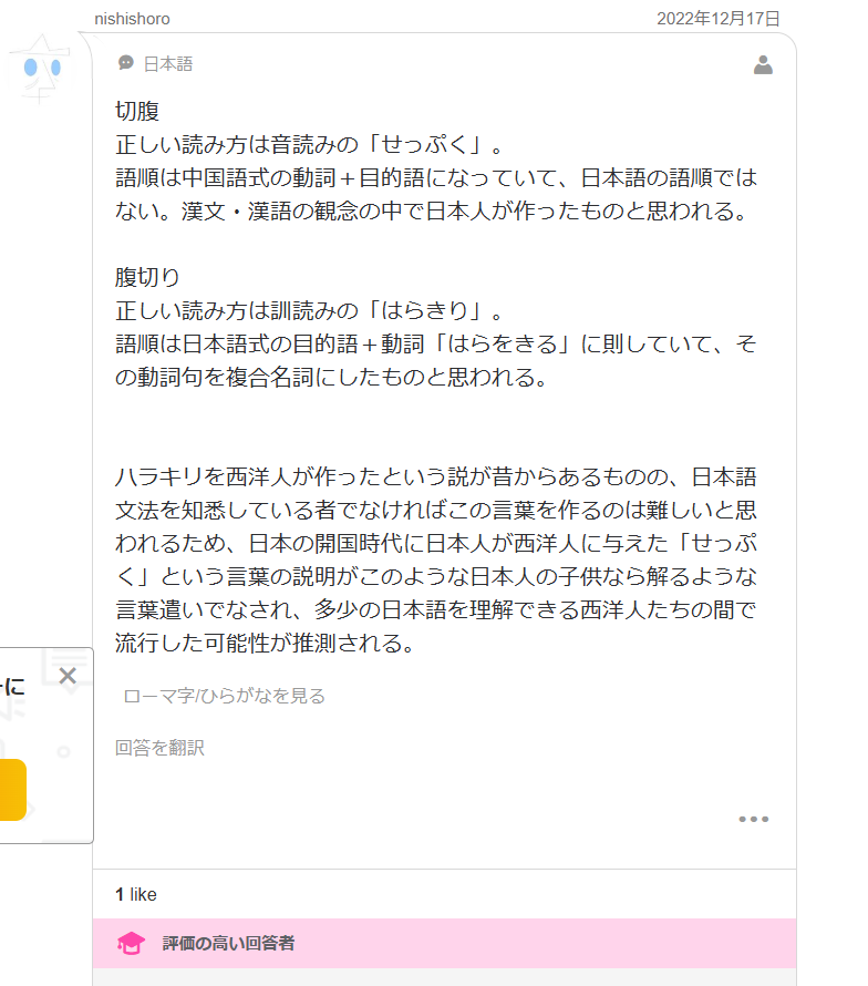 >>729644 На пике же написано, харакири это японское произношение "понятное даже ребенку", что триггерит пидоров-нитакусиков с выебонами "сложным японским".