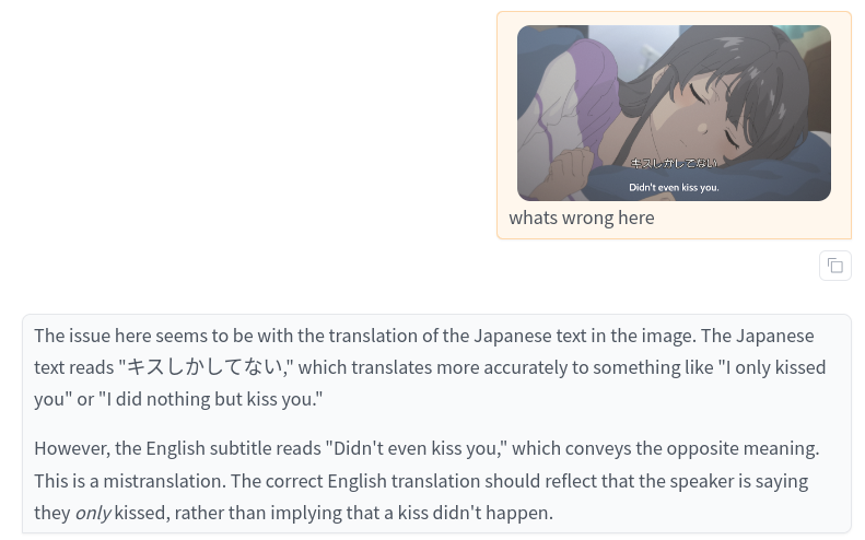 Впрочем, эти вещи представляют ценность лишь для тех кто действительно любит японский контент. Казуальный потребитель самого популярного по верхушкам, который изредка и ненадолго открывает, чтобы с друзяшками вместе погыгывать или там убить время в общественном транспорте – ему конечно будет всё равно. Точность? Ему и по картинкам норм. Озвучка плохая? Понятно и ладно. Что-то не переведено? Возьмёт то что переведено, он всё равно видел полтора тайтла.