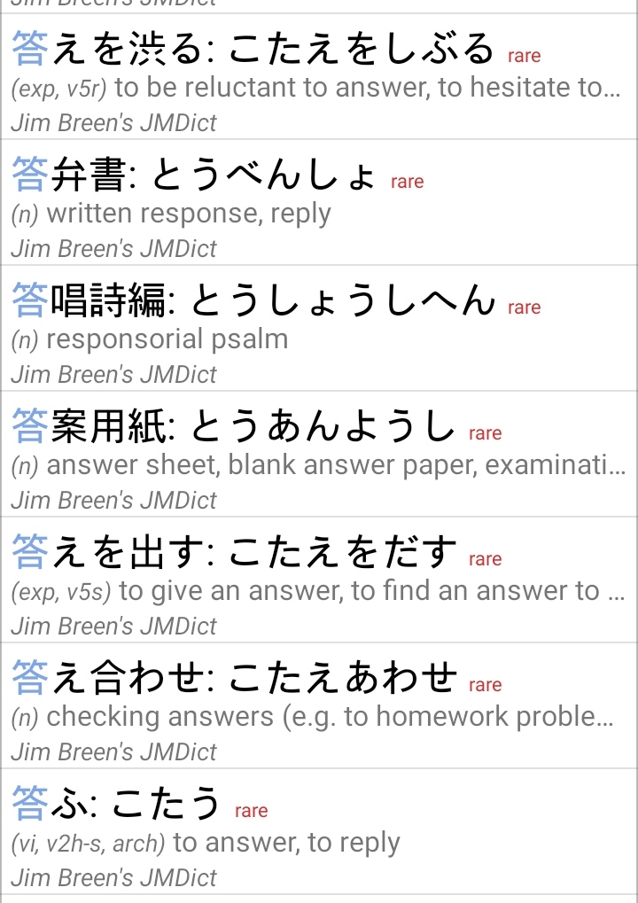 >что лучше, сам этот процесс, - когда ты на бумаге своей рукой канжи+каны Интересно , письмо от руки даже для примеров используют. Но никто так не выписывает слова? Поставил в очередной раз анки и удалил, больше не буду ставить. Не удобна эта программа именно как способ изучения новых слов . Мне надо чтобы все было по алфавиту и по иероглифам структурировано, чтобы я мог сам посмотреть какие слова мне нужны, а какие нет, вспомнить, вот здесь такое чтение, а здесь другое, прослушать все примеры, как в этом словаре к примеру. Электронный словарь это хорошо, но его не удобно читать как ее книгу. Заказал себе бумажный словарь, буду листать каждый день с карандашом.