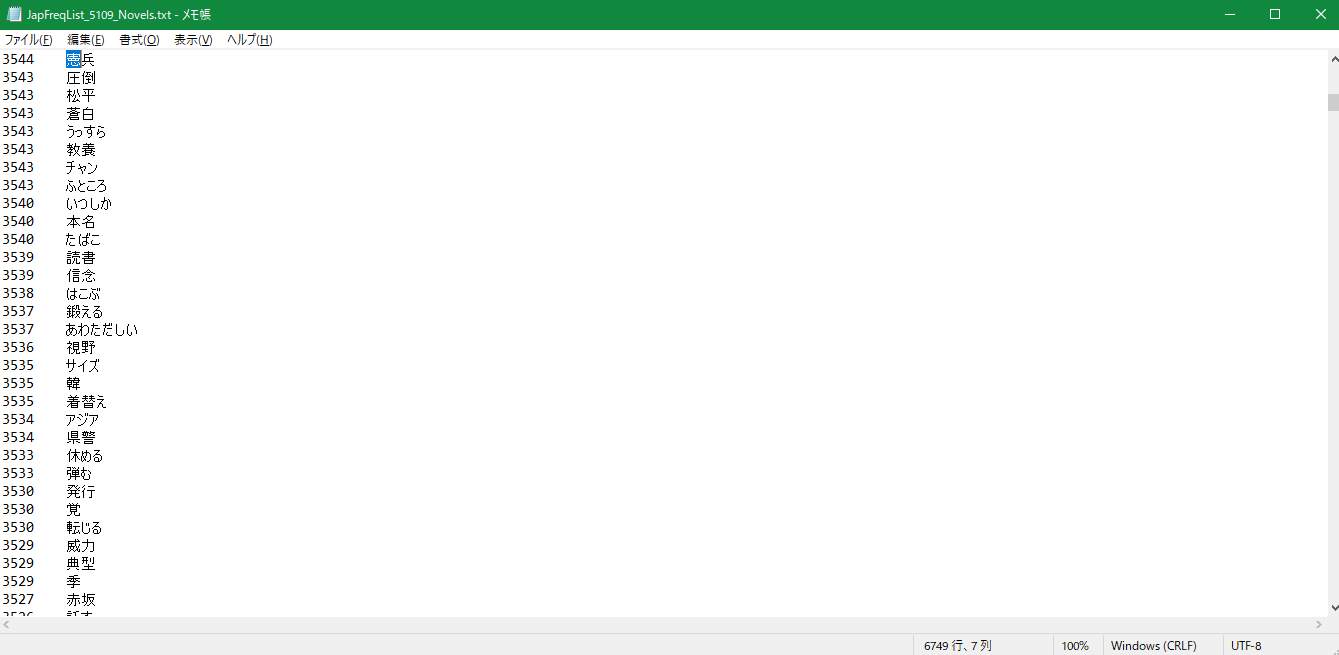 >>731203 > но его не удобно читать как ее книгу. Заказал себе бумажный словарь, буду листать каждый день с карандашом Бред. Надо не просто все подряд слова смотреть, а сперва те, которые самые частые, и от них к более редким. Для этого можно либо использовать списки по часточности, либо списки по уровням JLPT, либо списки по классам японской школы (но там есть несколько кандзей, которые в контенте на самом деле встречаются реже прочих кандзей из того же класса, например, конституция — 憲).