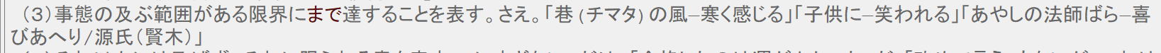 >>737486 まで может означать "аж"/"даже" (и без も), но в данном случае мне тоже кажется, что тут скорее не "аж", а просто "докуда", то есть, так же указывает предел, но без охуевания как в "аж". То есть, без まで было бы просто "куда", а с ним "докуда". Потому что по контексту тут не понятно, с чего бы с этого тут охуевать, так солнце светит у них каждый день во время заката по идее, если облаками не закрыто. > а? Ну типа было に溢れる, и вставили まで.
