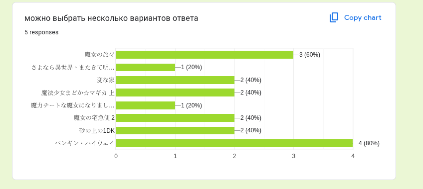 >>738291 >можно тоже же в голосовалку добавить будет. Зависит от того, как будем голосовать. Если с опцией 1 человек = 1 голос, то я предпочту выбрать тайтл, у которого хотя бы есть шансы. А если каждому можно будет сразу несколько вариантов выбирать, тогда и ведьмочка пускай будет. >до того, как появился чат жпт. В мое определение слопа входят не только нейросетевые высеры. >на 81-м месте по популярности на мале Ну я неспроста подчеркнул год выхода, анимешный топ очень волатильный и сколько там слизнюк продержится, заранее сказать сложно. Про отдельный ранобешный топ спорить не буду, в целом культурно значимые тайтлы типа судзумии, индекса, гоблина, дневника девочки, меча онлайн там на подобающем месте, так что особых претензий к нему не имею.