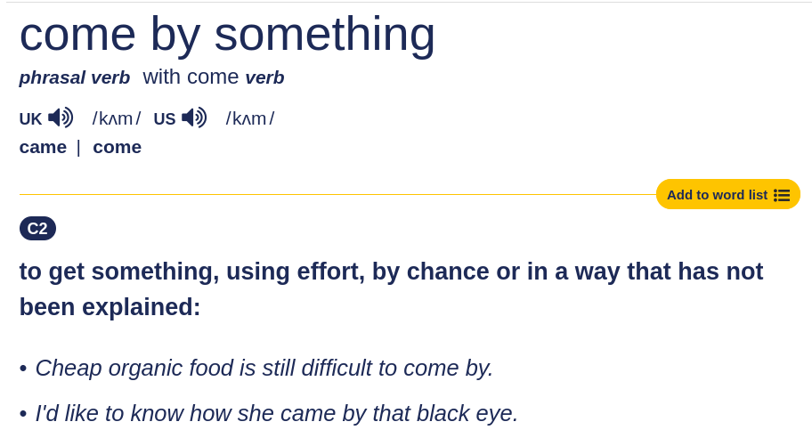 >>740039 Ну конкретно come by это не самый пиздецовый случай фразалок. Там всего по сути два смысла, заскочить куда-нибудь да достать что-то (остальные варианты связанные с by отдельно от come уже интонацией улавливаются).