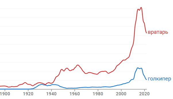 Надо думоть, почему слово "вратарь", которое на момент начала популяризации футбола было всеми забытым архаизмом (означало монастырского вахтёра) в итоге вытеснило слово "голкипер".