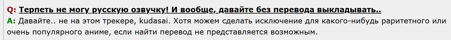 >>744154 >Что за правила такие? Такие. Про субтриты японские вообще можно забыть. >>744156 Так я с субтитрами и ищу. Но поковыряв рутрахер даже не везде есть оригинальная озвучка, как будто васяны её специально вырезают (ещё одна шиза на трекерах), а гугление на инглише выдаёт подписочные сервисы и среддит где дэбилы друг другу советуют нетфликс.