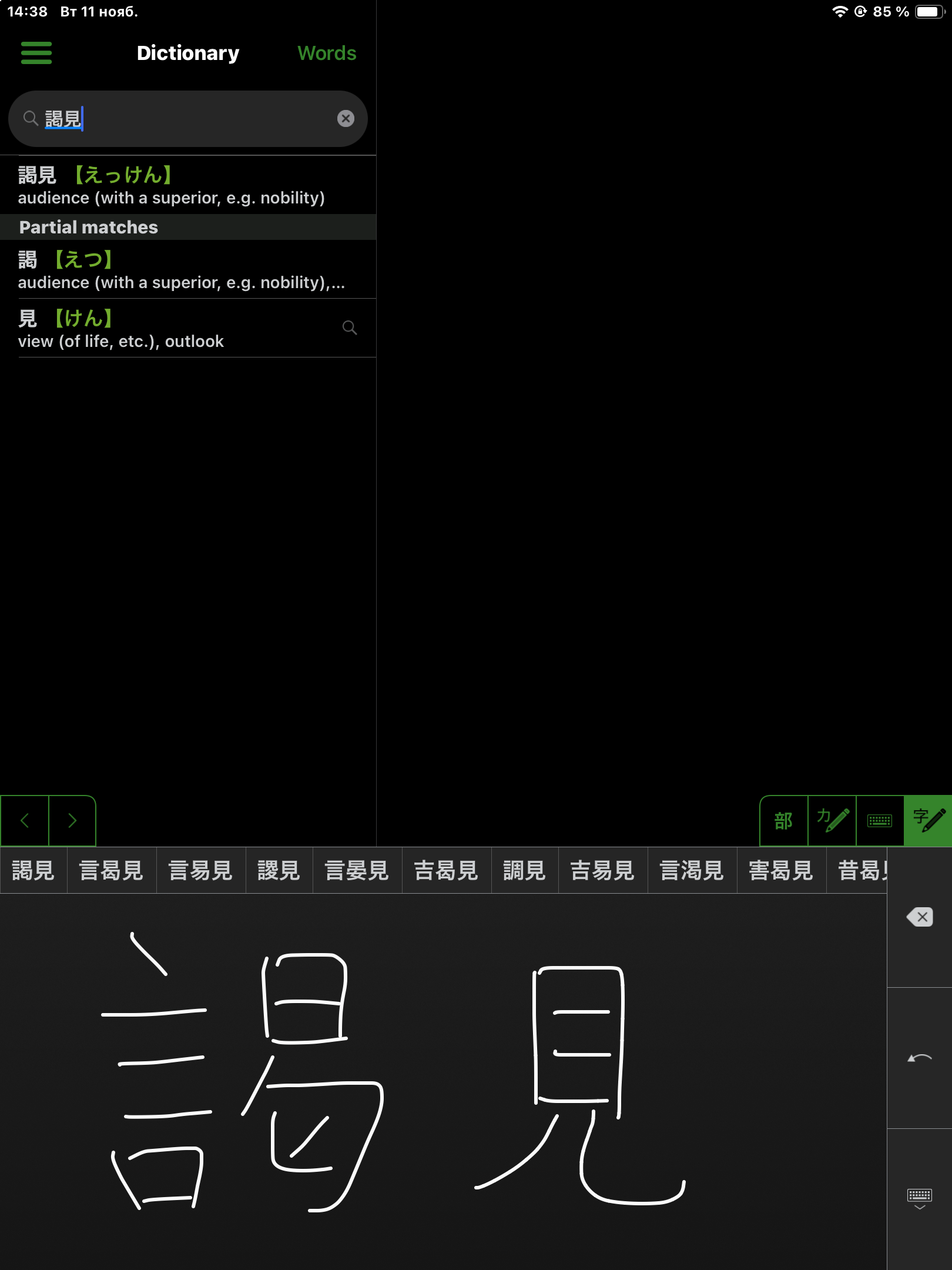 >>749312 >прикупил планшетик со стилусом, чтобы писать кандзи с кайфом, если кто-то знает хороший софт на iOS - делитесь Kanji teacher для рисования, есть много настроек, можно рисовать по шаблону со стрелочками, а можно вслепую, в общем посмотри демонстрацию работы в апсторе Shirabe jisho - словарь, есть рукописный ввод>>747876 Оба приложения бесплатные