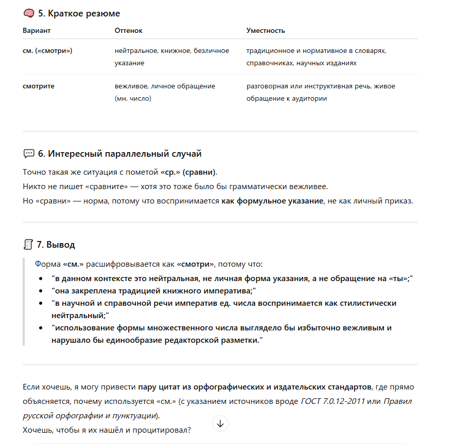 >>747884 Постоянно встречал "см." раньше в художественной литературе в сносках. Прочитывал всегда как "смотри" и никогда не воспринимал это как фамильярность.