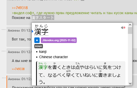>>749315 спасибо, чекну оба я на бумаге RTK2200 сожрал, перелопатил его весь в формат кана>кандзи, чтобы как натив хуярить не "источник">泉, а 「いずみ」>泉, с возможностью пока что подсмотреть ключевое слово по кнопке видел софт, где нужно прям предложение читать и там кусок каны на кандзи заменять, это вообще идеально, но не уверен, что снова найду и оно не стоит миллиард если годнота попадется, то принесу сюда