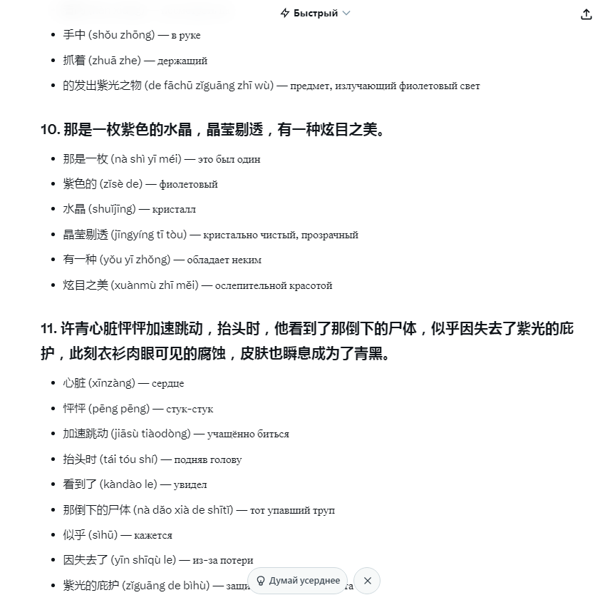 Берешь нужный текст - читаешь его в переводе - берешь оригинал - просишь нейронку разобрать его по словам (я использую грок) - читаешь по словам и копируешь незнакомые слова себе в словарик. Если нужно какое-то слово дополнительно проверить то можно пользоваться ZHongzhong-ом который переводит по наведению мыши + bkrs в соседнем окне/мониторе на всякий случай (т.к. Zhongzhong плохо справляется со сленгом)
