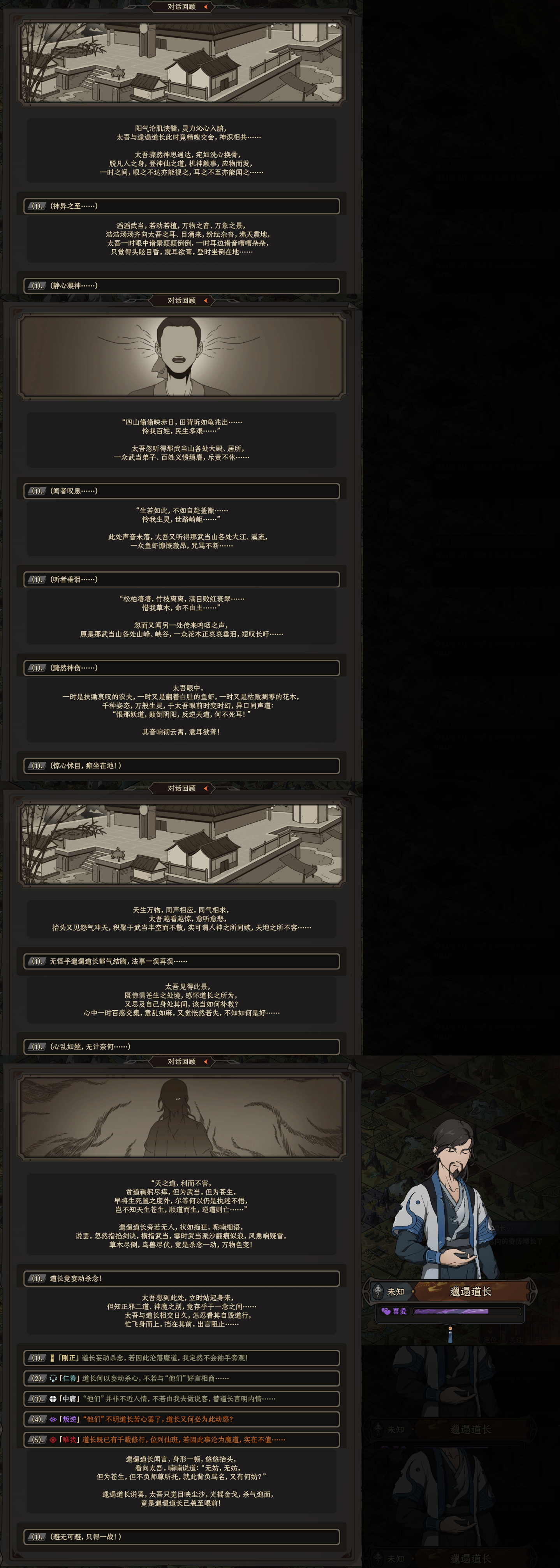>>753427 >>753455 >>753471 Похоже, здесь есть и российские друзья, которым нравится «грызть твёрдые орешки» в стиле древнего Китая, так что заодно порекомендую игру 《太吾绘卷》 (The Scroll of Taiwu). В плане геймплея игра местами довольно «самодельная» и замкнутая на себе, но к качеству текстов вообще не придраться. Лексика иногда настолько сложная и архаичная, что выглядит почти заумно, но по уровню текста она всё равно наголову превосходит почти все китайские игры. В апреле этого года выйдет полноценная версия — если есть уверенность в своих знаниях китайского, можно попробовать бросить себе вызов 😂 https://store.steampowered.com/app/838350/_The_Scroll_Of_Taiwu