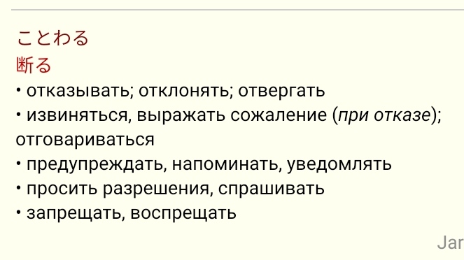 >>749904 Во втором пункте написаны значения спросить/получить разрешение. Соответственно, как 連用修飾 в отрицательном виде это будет сделать что-то без разрешения. В третьем пункте написано уйти откуда-то (退出・辞退・辞去). В примере под третьим пунктом написано вошёл без разрешения, то есть, как во втором пункте, а не как в третьем.
