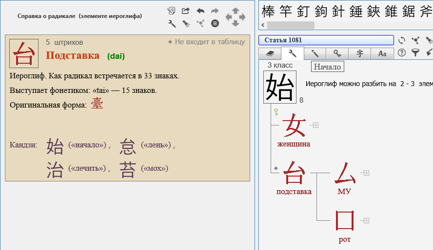>>750317>>750318>>750324 А подскажите, а где можно вот такие составные кандзи чекать на предмет более простых? Ну там типа батя в шляпе под деревом = начальная школа итд?