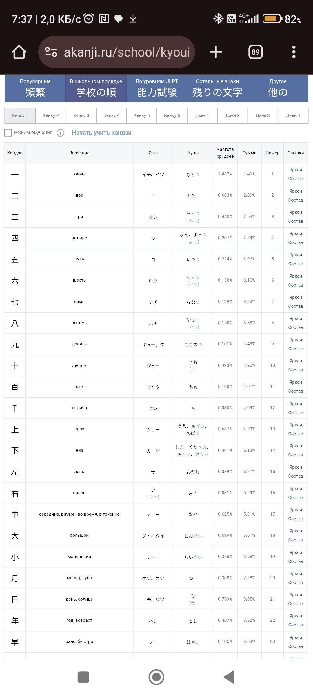 2. Любимый контент +google +анки (опцион) +Rikai/Nazeka/Yomichan(опцион) Использовать анки + готовую колоду (вариант, в общем-то, один https://ankiweb.net/shared/info/3173403321 ), можно начать сразу после заучивания хиракатакан. Только не стоит пытаться за раз учить по 100500 карт. В начале может показаться, что это легко. В колоде имеется некоторое количество опечаток, например, とがみ вместо てがみ.