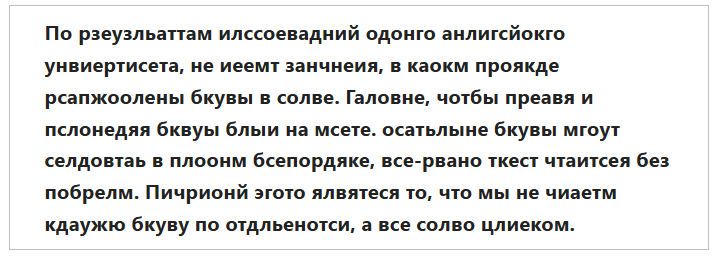 >>753354 > Тут >>753316 Там шиза написана. Пчелик выдумал, что у него только буквы можно читать, а когда что-то другое читаешь, то это типа не чтение а распознавание, пиздец вообще.