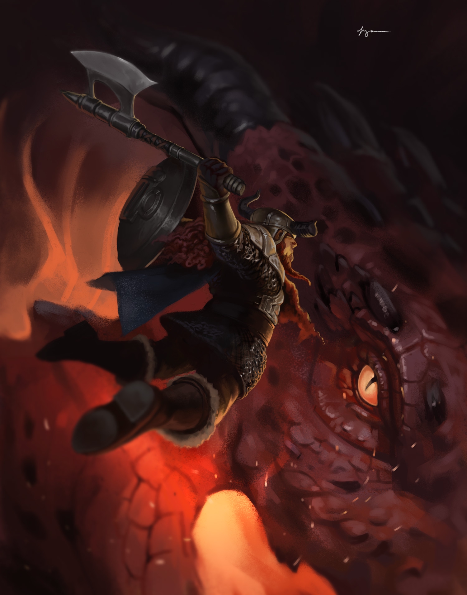 Сюжет сфокусируется на отряде искателей приключений. Их возглавит воитель Рейвен Хайтауэр (Raven Hightower), вооружённый огненным мечом. Им движет месть и горечь за гибель сестры. Среди других персонажей — некий полудракон (half-dragon, возможно, речь о драконорожденном, dragonborn) Хак Кэрроуэй (Hack Karroway), вор-гном Оливан Трикфут (Olivan Trickfoot) и замаскированный паладин Алисса Стилсонг (Alyssa Steelsong). Она займёт место Паларандуса, когда дракон умрёт. Главным злодеем станет мужчина-дроу по имени Рейзер Холбар (Razer Horlbar), который когда-то держал Рейвена и его сестру в рабстве — вместе с тифлиной по имени Дамала (Damala) и свирепым воителем по прозвищу «Зверь».
