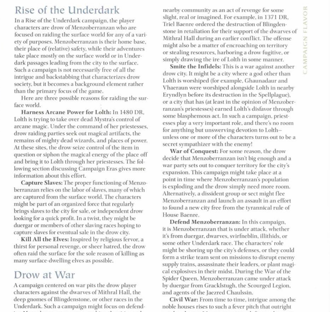 Вот еще прикольная книженция для дроуводов. Игрокам предлагалось вылезать на поверхность и убивать и эльфов и захватывать, лол. Вот это базища. Про всякие дома расписано и прочее. Когда-нибудь наверну все эти книженции про войну паучье королевы. https://www.youtube.com/watch?v=EpJjKjKDCfs