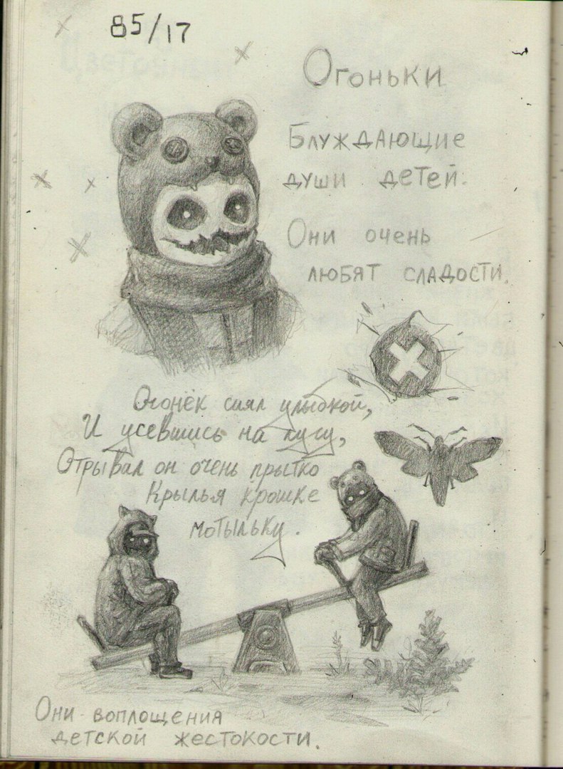 Голодный. В Голодных превращаются бездомные, замёрзшие насмерть или умершие от голода. Обычно безвредны, по ночам выползают из своих укрытий в покинутых домах и на мусорных полигонах, роются в помойках, тоскливо воют, а заметив случайного прохожего — ковыляют к нему, жалобно скуля и тряся протянутой рукой. Считается, что встретить Голодного — плохая примета, однако если поделиться с Голодным какой-либо едой или алкоголем, несчастье пройдёт мимо... Если ночью на пустыре близи крупной свалки или заброшенного квартала разжечь костёр, то вскоре вокруг него соберётся множество Голодных.