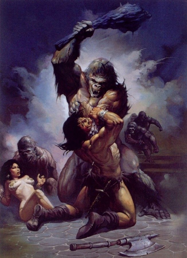 Прошел год, наверное. Увидел в книжном еще одну книгу. Конан идет по следу, автор Шон Мур. Кто-то из предков, уже не помню, с кем я там был, мне ее купил. И вот ее я уже прочитал практически не отрываясь за день. А она еще с элементами хоррора. Офигенное погружение было. Следом мне купили Конан и Живой ветер от Роланда Грина. Точно так же прочитал за день целиком. А еще это была первая моя книжная эротика. Ее там совсем чуток было, но впечатления были яркие.