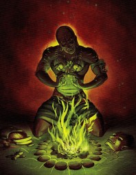 Например в Сокровищах Пифона (по общему мнению книга мусор, но лично мне нравится) в глубинах южного континента дохулион лет назад из космоса упало чудовище. В месте падения со временем образовалось озеро. Под влиянием чудовища живые существа в озере преображались в мерзких тварей, вроде рыб с руками и лицами. Потом на береках озера поселилось племя. Чудовище подчинило их жизнь себе, они стали приносить ему жертвоприношения.