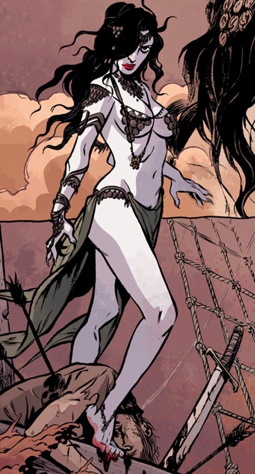 В Чертоге Крома есть момент, когда колдун, нанявший корабль, чтобы доплыть до севера, вызывает из глубин чудовище, щупальцы, пасти, все как положено. И приносит часть команды ему в жертву. И упоминает, что это даже не главный, а всего лишь младший из морских богов.
