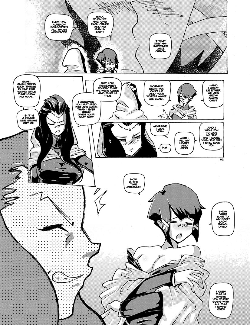 >>502783 Мне бы больше по душе пришлась романтическая линия между Эгвейн и Авиендой во время их ученичества у Хранительниц. Обе довольно вздорные, но при этом вынуждены держать нрав в узде, ведь у Хранительниц не забалуешь. И вот они то сдерживаясь, то срываясь друг на друга, то снова мирясь - потихоньку проникаются друг к другу нежными чувствами. А добавляет жару любовь Хранительниц к отбыванию наказаний голышом на глазах у всего лагеря.