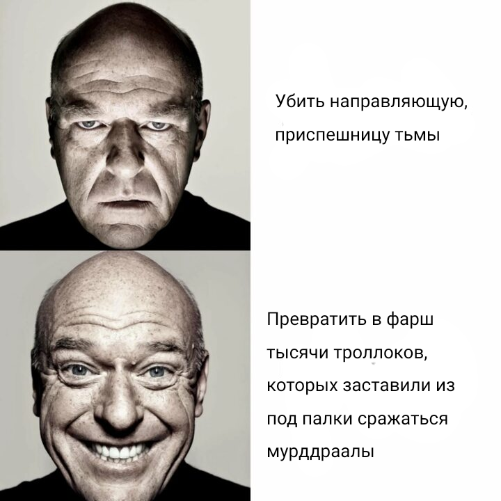Прочитал шестую книгу, смешанные впечатления. Финал ударный, конечно, но одну часть в итоге выстреливших сюжетных ружей слишком медленно заряжали, тогда как для другой не хватило больше внимания. Касается это в первую очередь Черной Башни - то, что прокачка рекрутов прошла в основном за кадром, сильно повысило эффектность "фемки сосать" и аннигиляции волн противников в конце книги, но её чрезмерную резкость это не отменяет. Во всяком случае, Таим - базовичок и настоящий решала, топовый персонаж. С новой Амерлин тоже резковатый сюжетный ход был, пусть и в меньшей степени. Благо это, а немного ранее Исцеление трио (весьма трогательный момент) наконец-то спасло линию Найнив и Илэйн от уныния. Но с пленной Могидин все равно потенциал, мягко говоря, раскрыт полностью не был, я ожидал каких-то майнд геймз с обеих сторон, а шиш. Понравилось, что Отрекшихся стали преподносить больше не просто как злых колдунов и колдуний, продавших свои жопы тени, а попаданцев (Грендаль и Семираг так и вовсе люди науки) в постапокалиптическое будущее, где все равно приходится опасаться дикарей. То, как от всего навалившегося у Ранда начала активно свистеть фляга, а потом явилась top tomboy gf Мин и его попустило - всем стоит взять на заметку.