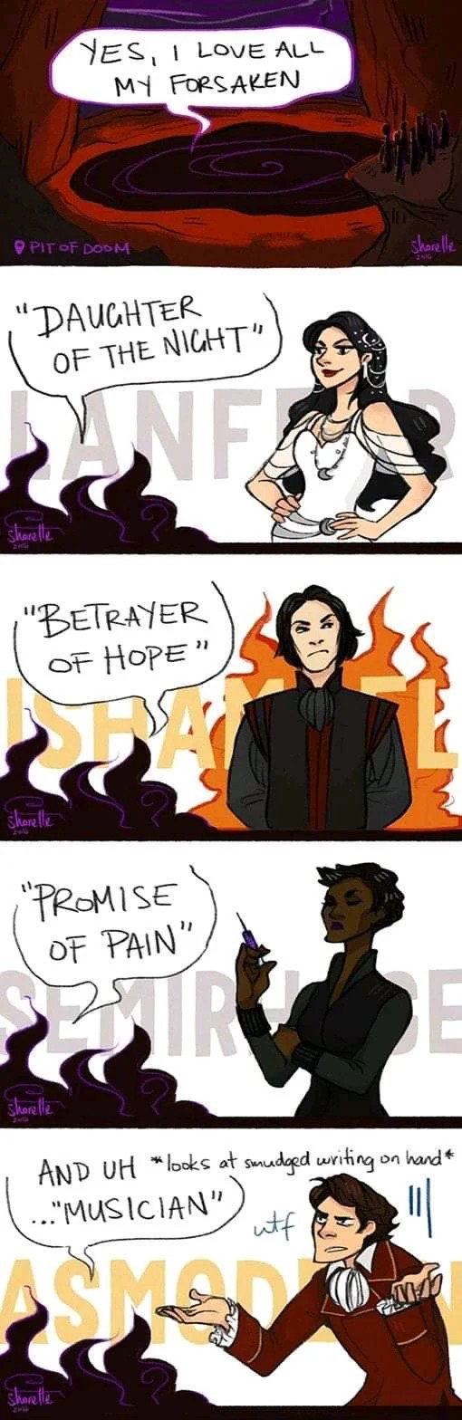 Дочитал пятую книгу, Асмодиана за что, он заметное разнообразие в пати вносил. Не понравилось, что баланс сбился - Авиенда и так сама по себя крута (как и сцена в снежной хижине, Мартин со своей пещерой отдыхает), но ещё зачем-то в противовес Илэйн стала куда более склочной чем раньше, и вообще на деда вешается (при всём уважении к базовичку Тому). Найнив заебала со своими загонами, благо сюжетную линию с ней в соло затащила Могидин со своей злодейской харизмой.