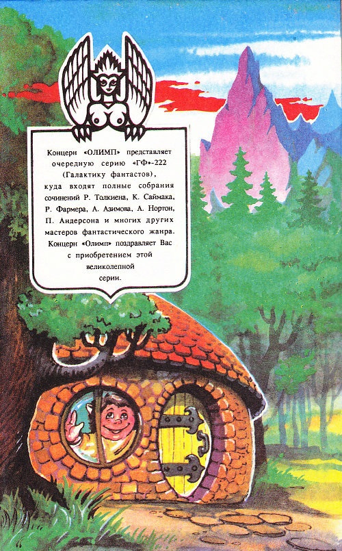 У норi пiд землею жив собi гобiт. Не в бридкiй загидженiй мокрiй норi, де повно дохлих червiв i тхне багном, але й не в сухiй та голiй пiщанiй печерi-вигрiбанцi, де анi сiсти, анi попоїсти - нiчогiсiнько немає. Була то гобiтiвська нора, а де гобiти, там i затишок. До нори вели дверi: круглi-круглiсiнькi, мов iлюмiнатор на кораблi, ще й пофарбованi в зелений колiр. Якраз посерединi на тих дверях сяяла кругла ручка з жовтої мiдi. Вiдчинялися вони до передпокою, схожого на невеличкий i дуже вигiдний - тунель: нiякого тобi диму й чаду, кахляна пiдлога вистелена килимками, скрiзь полiрованi стiльцi, а в обшитих панелями стiнах безлiч кiлочкiв для капелюхiв та плащiвцей гобiт полюбляв вiтати гостей. Тунелик звивався далi й далi, заглиблюючись, але не дуже, в гору, що її всi в окрузi називали просто Горою. В самому тунелику чи то передпокої теж були дверi, чимало маленьких круглих дверей. Спочатку, як увiйти, вони траплялися лише з лiвого боку, проте трохи далi гiсть бачив дверi вже обабiч. Нашому гобiтовi не доводилося пихкати, чалапаючи сходами на другий поверх, бо все у нього: спальнi, ваннi кiмнати, льохи, комiрчини (безлiч комiрчин), гардероби (цiлi кiмнати призначалися пiд саму одежу), кухнi, їдальнi - було розташоване на одному поверсi, власне, при тому самому тунелику-передпокої. Найкращi кiмнати були, звiсно, тi, котрi з лiвого боку (як увiйдеш), адже тiльки вони мали вiкна, глибоко посадженi круглi вiкна, якi дивилися на гобiтiв садочок та на луки, що потроху спускалися ген аж до самої рiчки. Гобiт цей був дуже заможний, i звали його Бiльбо Злоткiнс. Злоткiнси жили тут, пiд Горою, з давнiх-давен, нiхто й не згадає вiдколи, i всi мали їх за вельми поважних людей - не тiльки тому, що зде бiльшого вони були багатi, а й тому, що Злоткiнси нiколи не вплутувалися нi в якi пригоди й не робили нiчого такого, чого б вiд них не сподiвалися. Можна було наперед сказати, що вiдповiсть будь-який Злоткiнс на те чи те запитання. А от ця повiсть - саме про те, як один iз роду Злоткiнсiв зазнав пригоди i, собi на диво, почав робити й говорити зовсiм несподiванi речi. Вiн, може, й втратив повагу своїх сусiдiв, зате здобув... ну, та ви побачите самi, здобув вiн що-небудь урештi чи нi.
