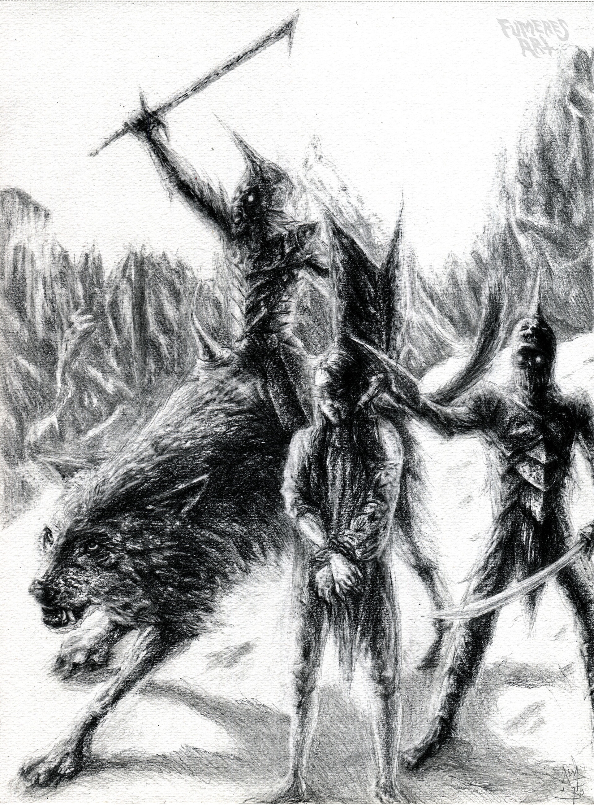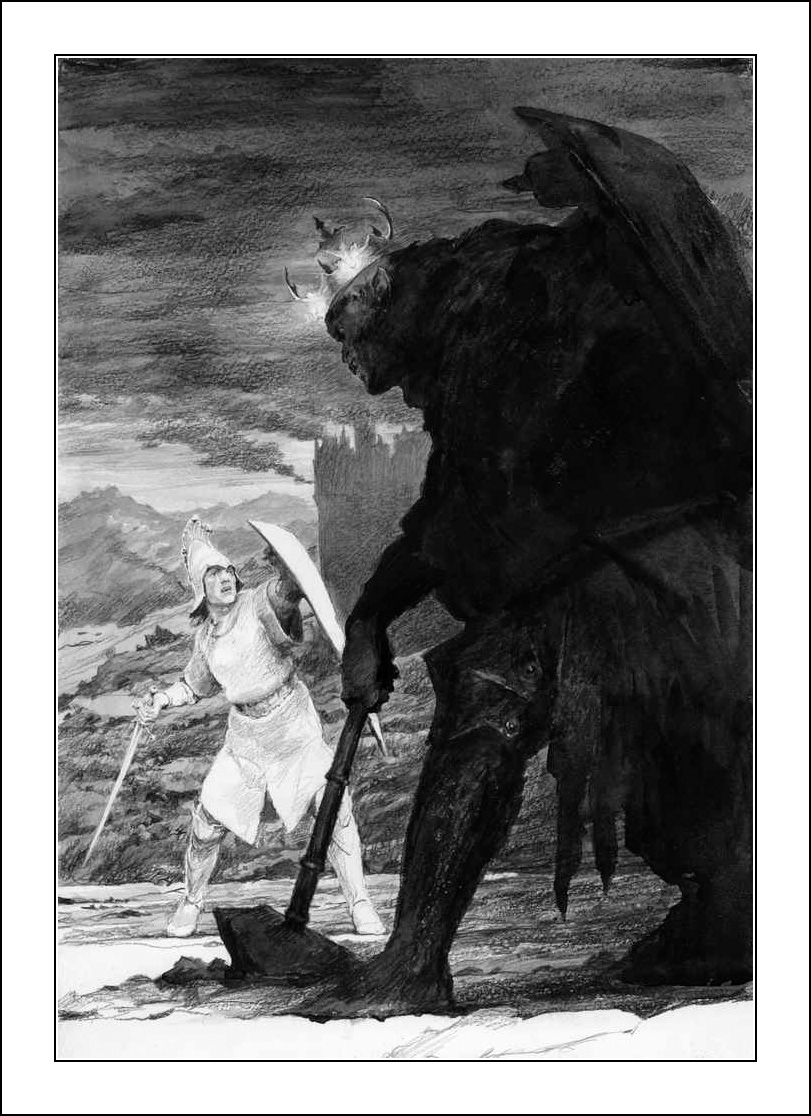 О, я и дунландца набрасывал. Он у меня был с черной косматой бородой, в кольчуге, шлеме-шишаке, и с широким мечом на плече. Почему-то было много образов, чиркал их в тетрадке, но как-то далее не развивал.