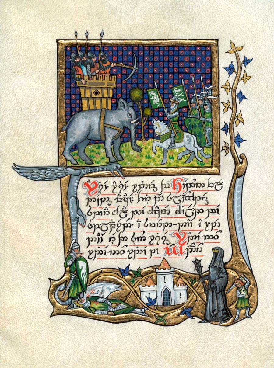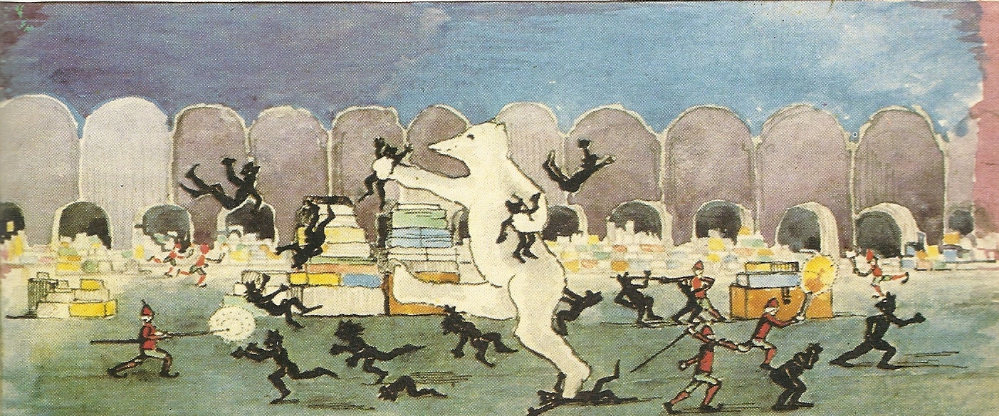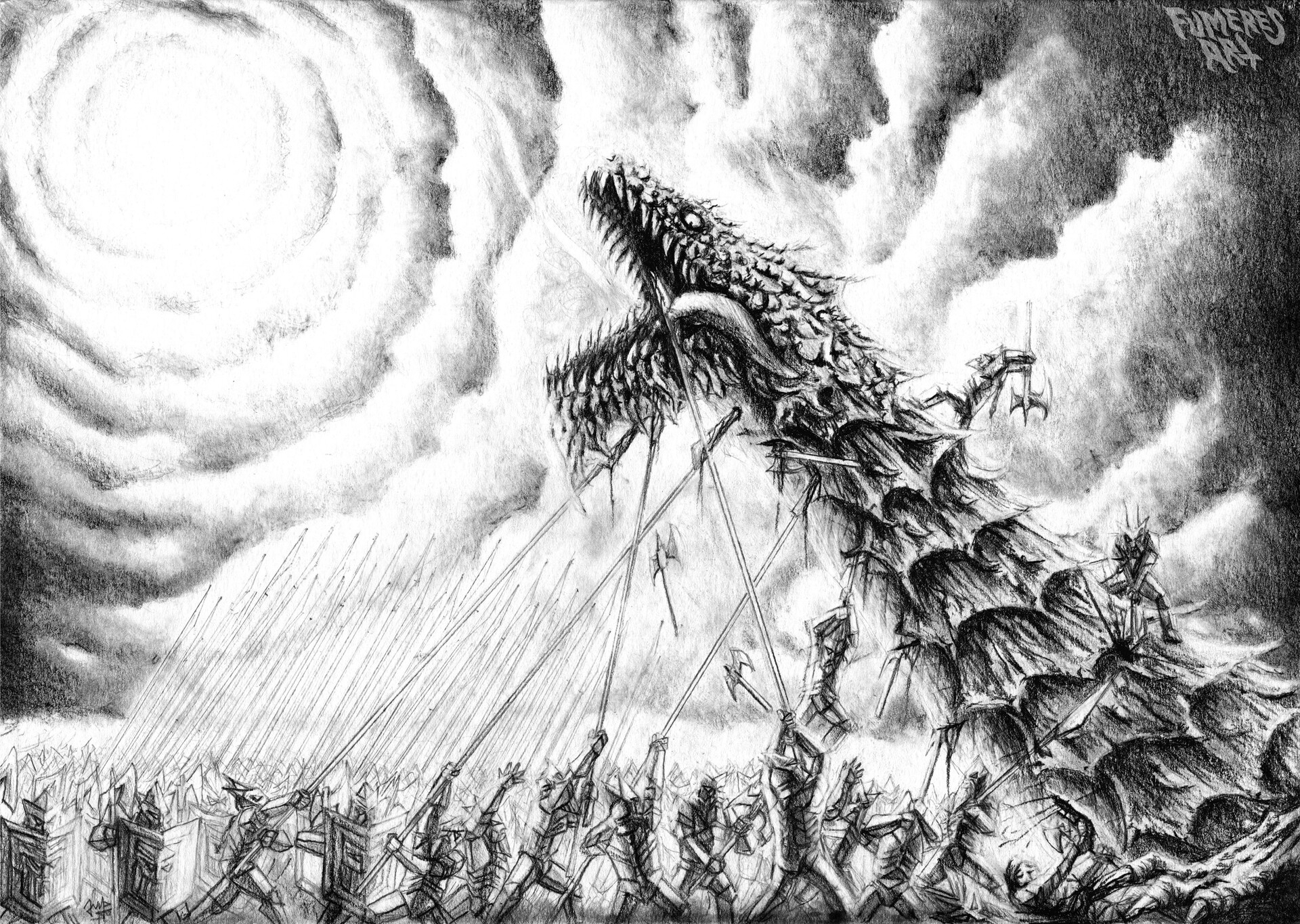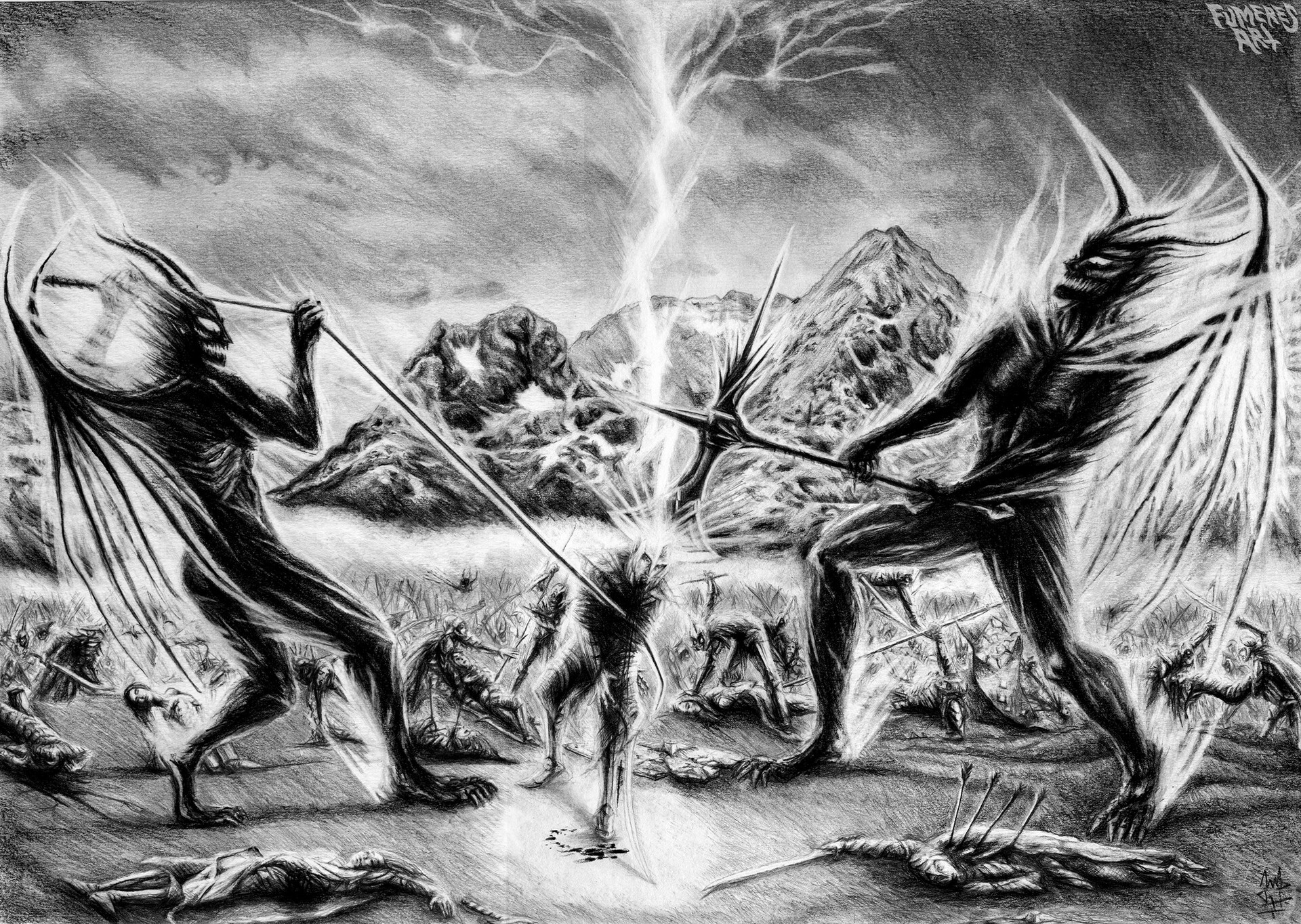 Я рисователь, даже профессиональный. В юности хотел нарисовать как в Гондор приходят воины Форлонга. По моему представлению, они должны были идти по мощеной мостовой, и на них сверху падали бы лепестки роз. Они были с бердышами, доспехи на них были бы сходны с фильмовыми, только шлемы формой как у эллинистических фалангитов, с завитушкой-колпаком сверху. Но далее набросков не продвинулось. Если найду, запощу. А еще я битву при Азанулбизаре(или как там) рисовал.