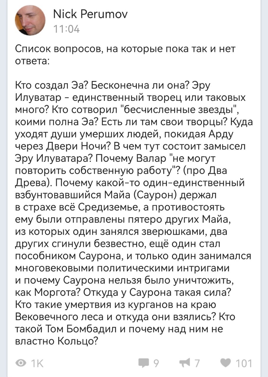 Как же скатился тред. Даже в треде Мартина сейчас лучше обсуждения. А всё потому что новых книг уже полвека нет и будет. Дохлая вселенная давно умершего профессора.
