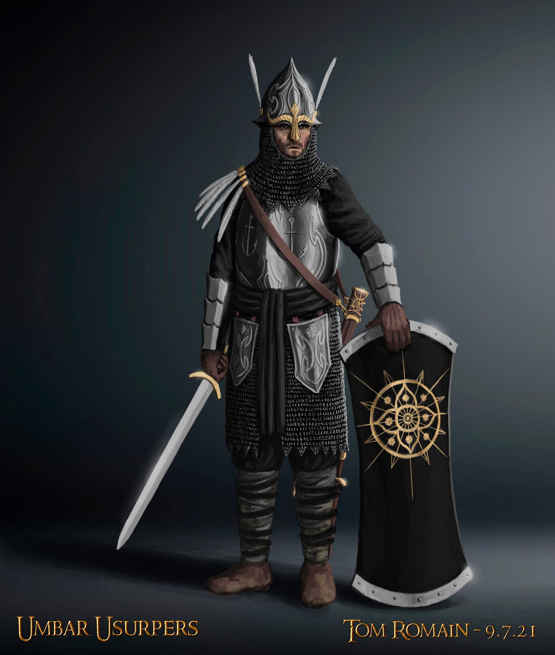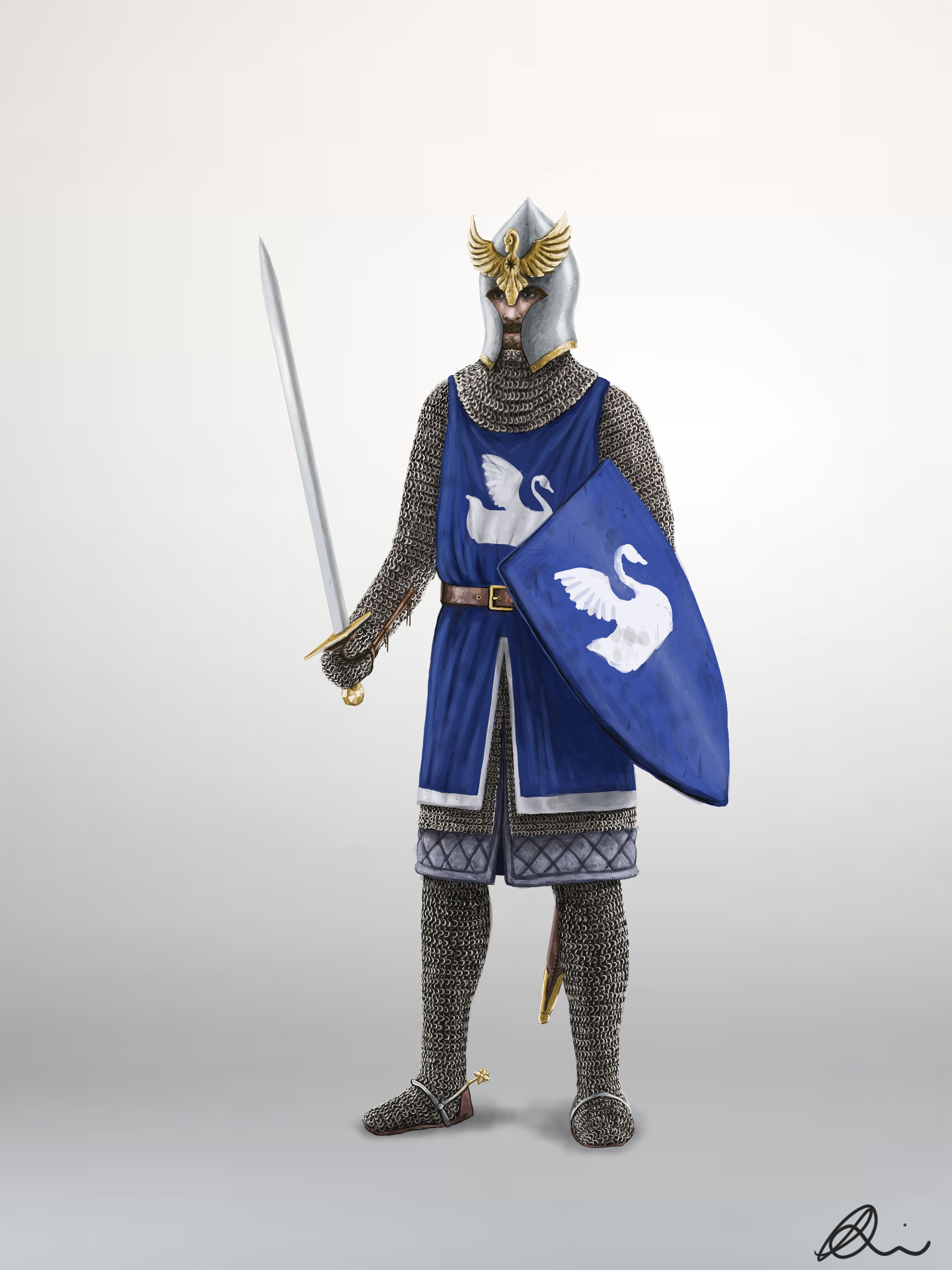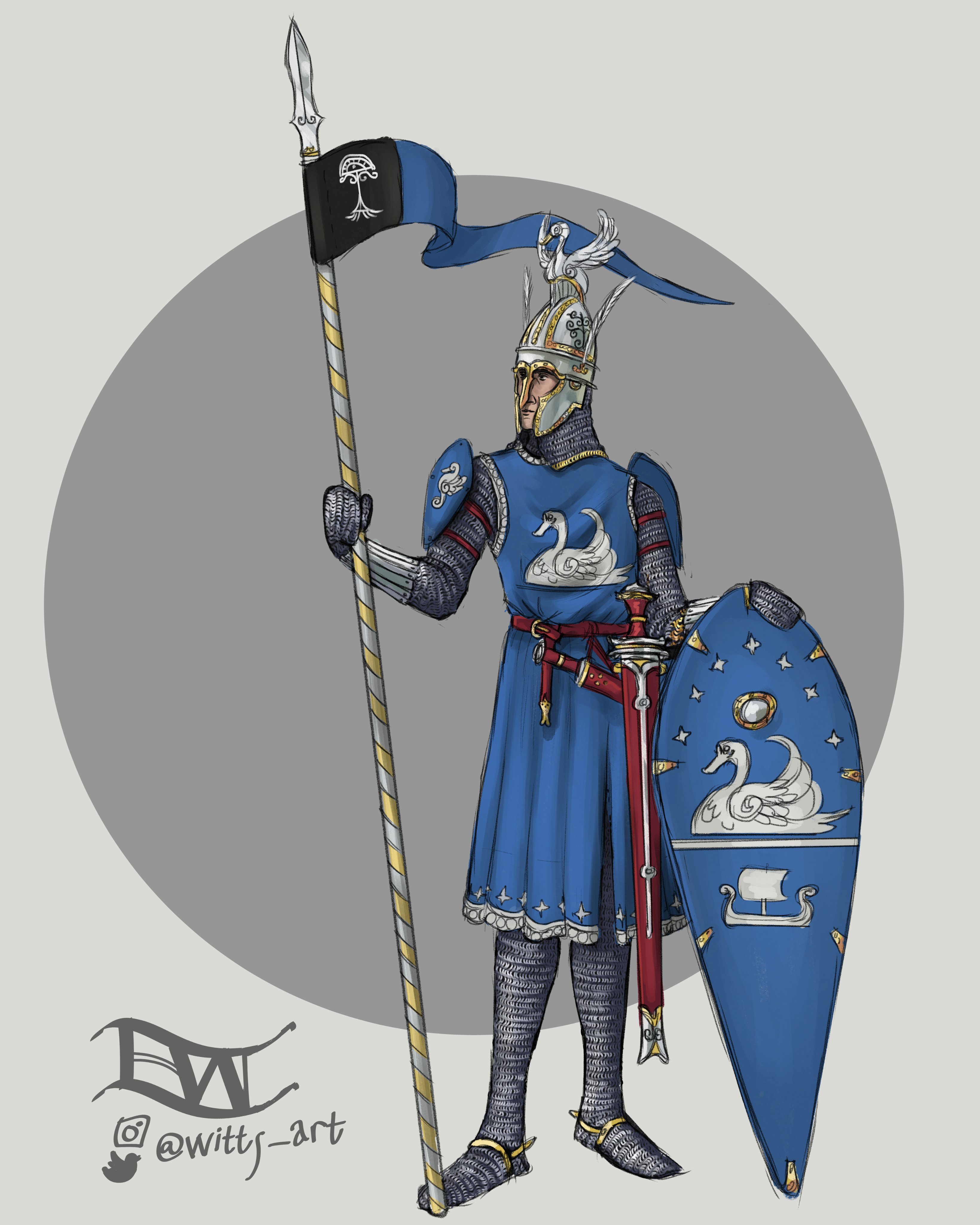 >>561524 Сюрко (гербовая накидка на доспехи) с символикой Дол Амрота. В книге упоминались сюрко с белым древом у стражи цитадели, значит и у дол-амротских рыцарей могли быть тоже.