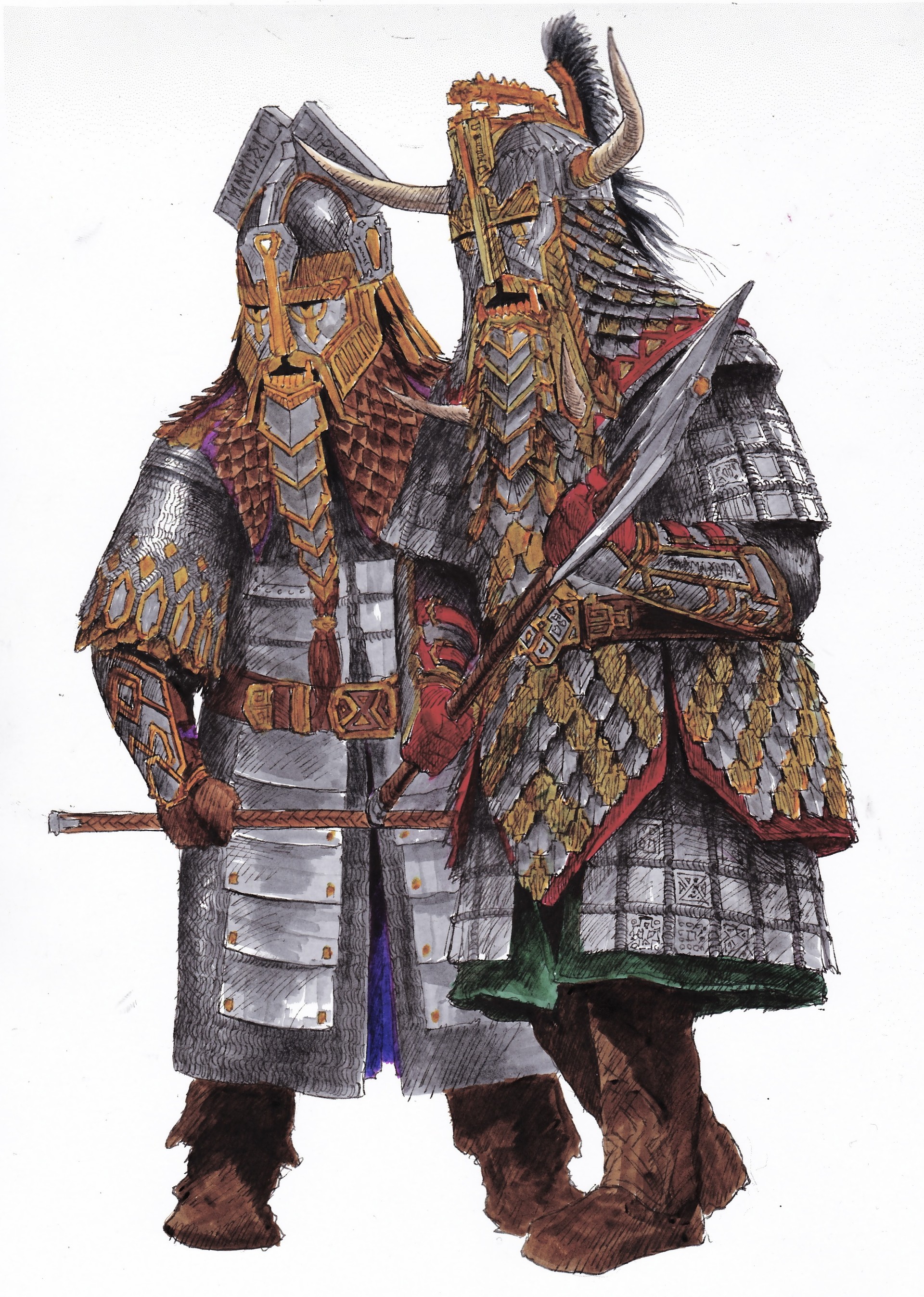 Они похожи на фильмовые, но не в точности как там должны были быть по моей задумке. Я в подростковом возрасте оказался под впечатлением от иллюстраций в книге "Русь под игом"(см пример). Мне гондорцы представлялись с подобным разнообразным вооружением - кто-то в кольчуге, кто-то в кирасах с наплечниками как в фильме, кто-то в ламелляре и т д.